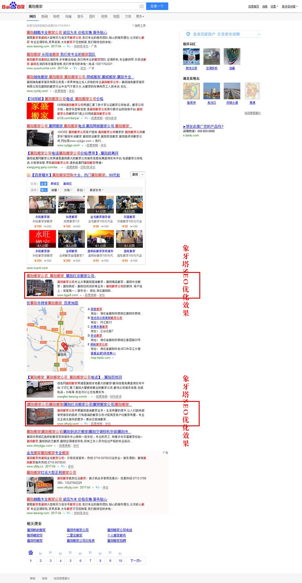 湖北象牙塔签约襄阳红运搬家网站SEO优化营销